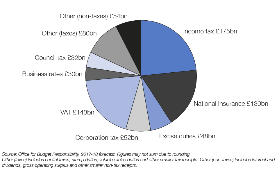 Chart 2 shows the different sources of government revenue. Public sector current receipts are expected to be around £744 billion in 2017-18.