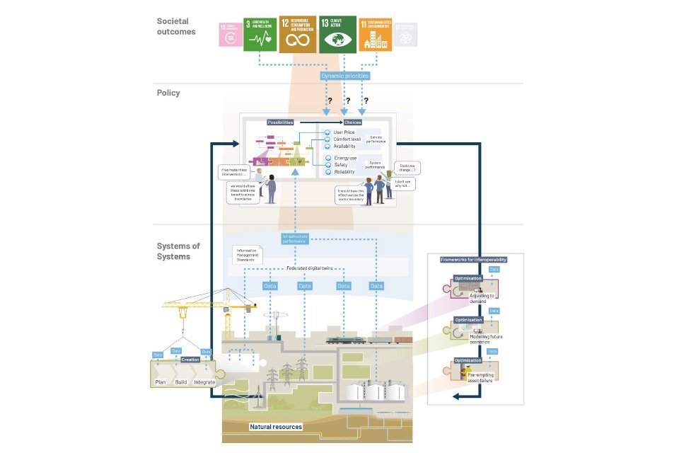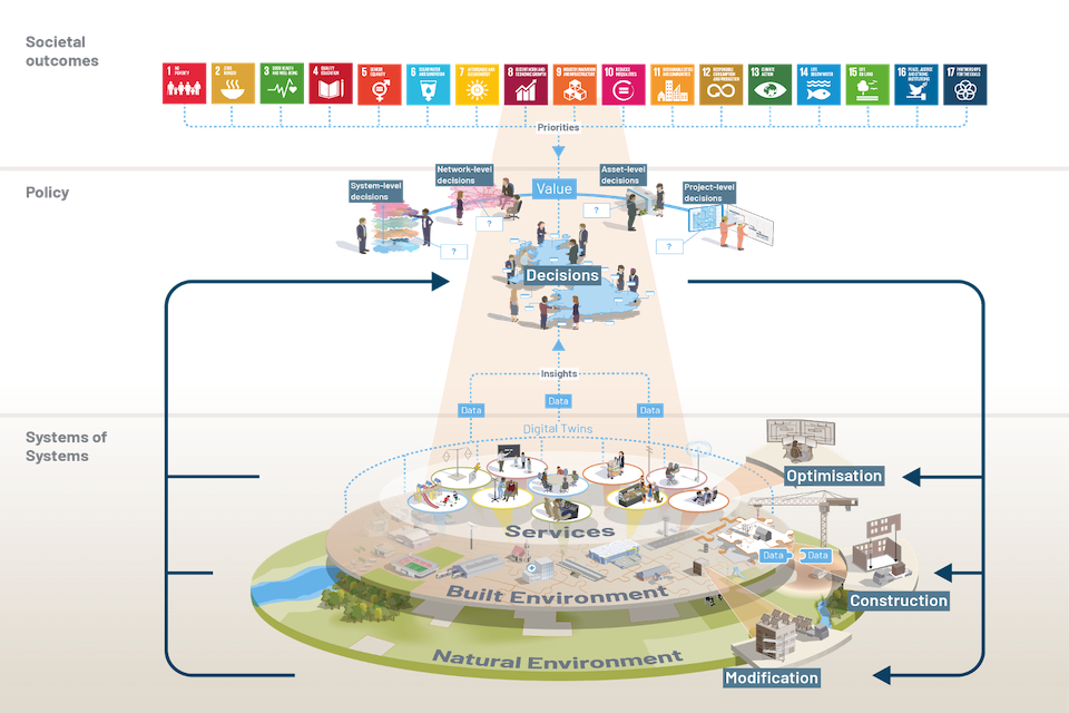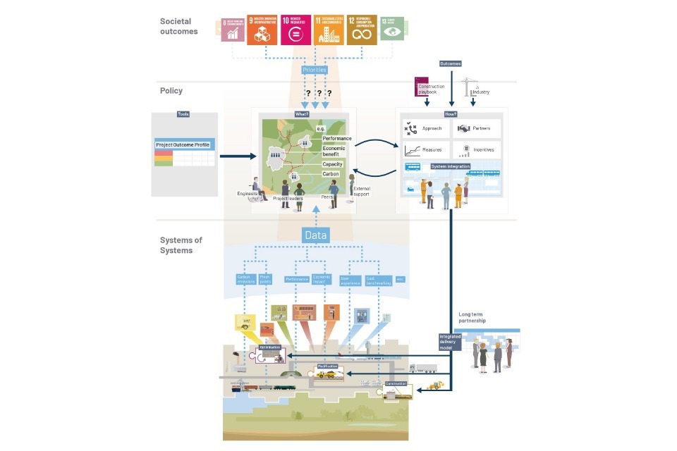 The UN Sustainable Development Goals provide a basis upon which societal outcomes can be identified which address the real world problems of people and nature, providing an explicit rationale for the policies we set and the interventions that we may decide to make. Drawing the direct line between those goals and the delivery of projects and programmes on the ground requires us to collaborate digitally, to overcome cultural barriers, and to adopt more enduring delivery models and different ways of thinking about value and reward.