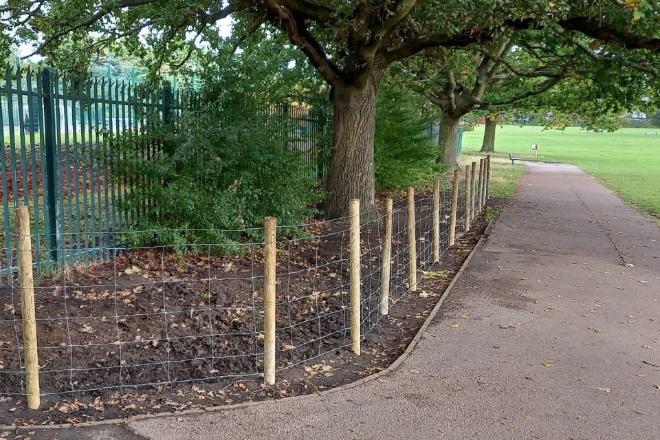 Post and wire fencing was put up to cordon off high risk areas along public footpaths. Crown copyright 2024.