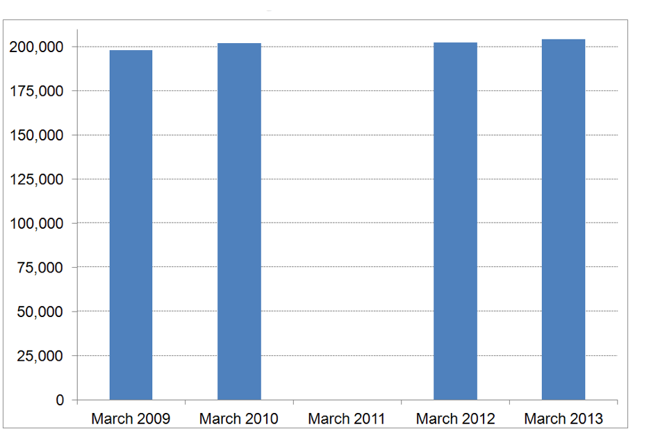 The modelled estimates for 31 March 2012 have been revised in this year’s release as the calculations now also incorporate 31 March 2013 data where possible. This is because LAs have indicated that the figures they submit become more accurate over time so using the latest available data to calculate the modelled estimates will improve their accuracy. The table below shows how the headline figures, which include modelled estimates for the non-responding LAs, have changed ranging from a decrease of 10% to an increase of 6%. See the User Guide for an explanation of the modelling procedure.