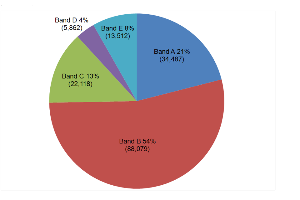 Based only on the LAs who provided data, there were 201,976 premises licences in force on 31 March 2013, and of these, fee band information was provided for 164,058 licences. Over half (54% or 88,079) were in Band B. The next largest fee band was Band A, which accounted for around a fifth (21% or 34,487) of premises. Of the premises licences in force on 31 March 2013, 11,164 (6% of the premises total) did not attract a fee, even though a fee band was set.