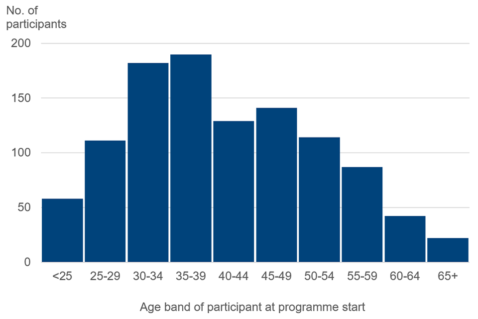 Figure 3: Plot showing the distribution of participant ages at programme start (all starters before April 2022)
