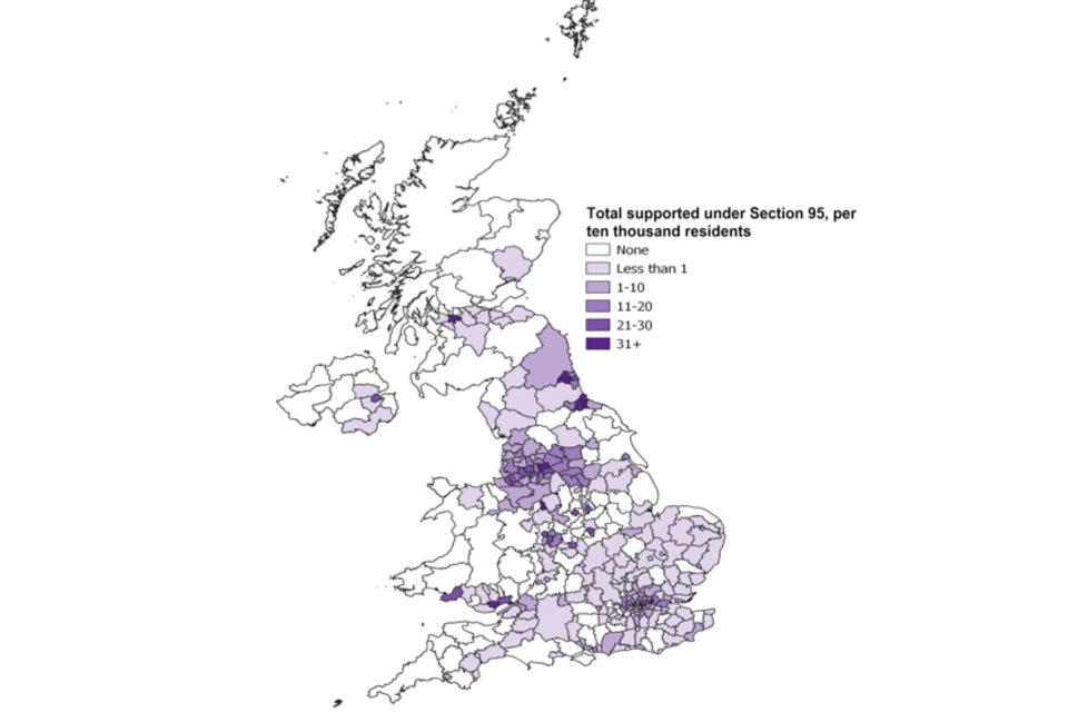 17% were in receipt of Section 98 support, provided to destitute asylum seekers who are awaiting a decision on their Section 95 application, or have been approved for Section 95 support and are awaiting transfer to their dispersal accommodation