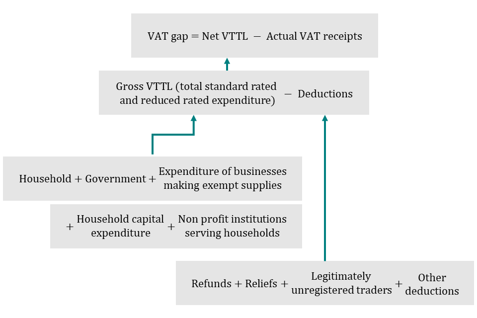 A2. There are numerous methodological approaches to measuring tax gaps. The tax gap is the difference between the amount of tax that should, in theory, be paid to HMRC (‘theoretical tax liability’), and the amount that is actually paid.