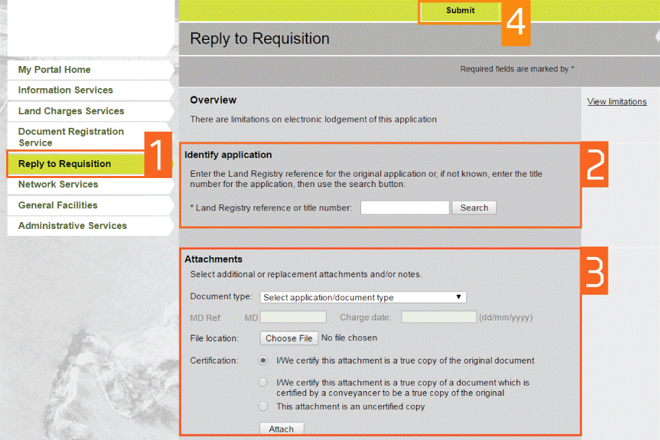 If you submitted your application using the HM Land Registry portal or submitted your application by post, you are able to reply to requisition using your portal account.
