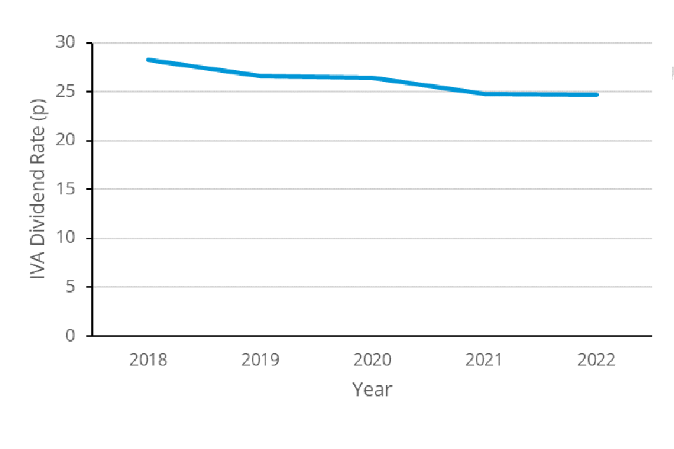 Average dividend rate in IVAs 2018 to 2022