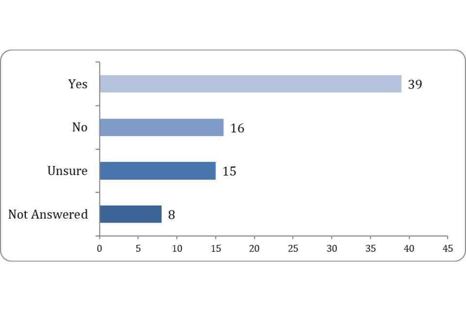84.62% of respondents believed that changes were needed to the legislation, although only 34.62% believed that the legislation would benefit from major changes or restructuring. 7.69% of respondents believed that the potential downsides of restructuring the legislation would outweigh the benefits, compared with 43.59% who believed the benefits of a restructuring would outweigh the downsides.