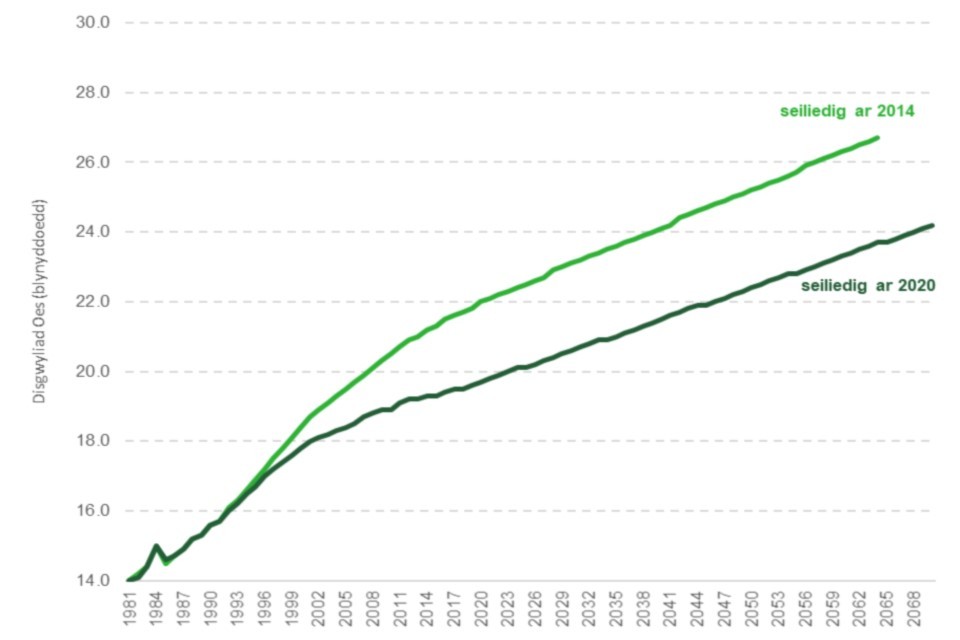 8.4. Ers hynny, mae twf cymharol araf mewn GDP, ynghyd â chynnydd parhaus yn nifer y pensiynwyr ac uwchraddio mwy hael i bensiynau drwy’r Clo Triphlyg wedi cynyddu costau Pensiynau’r Wladwriaeth ymhellach fel cyfran o’r GDP.