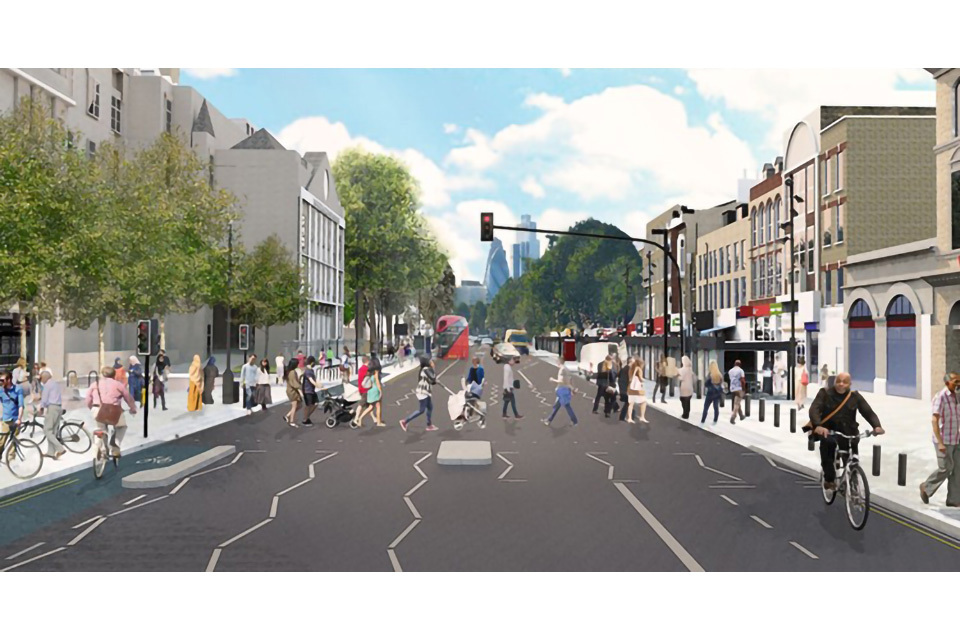 Artist’s impression of Whitechapel Road and how the area would look - accommodating for pedestrians and cyclists