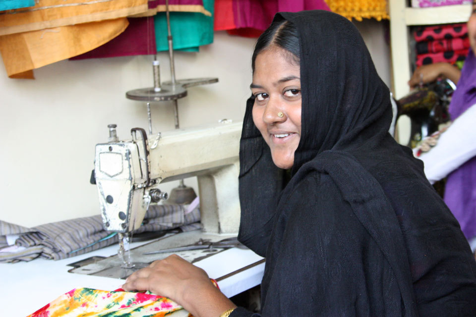 Thanks to UK aid Khaleda attended a 3-month training programme where she learnt how to make dresses. Picture: Narayan Debnath/DFID