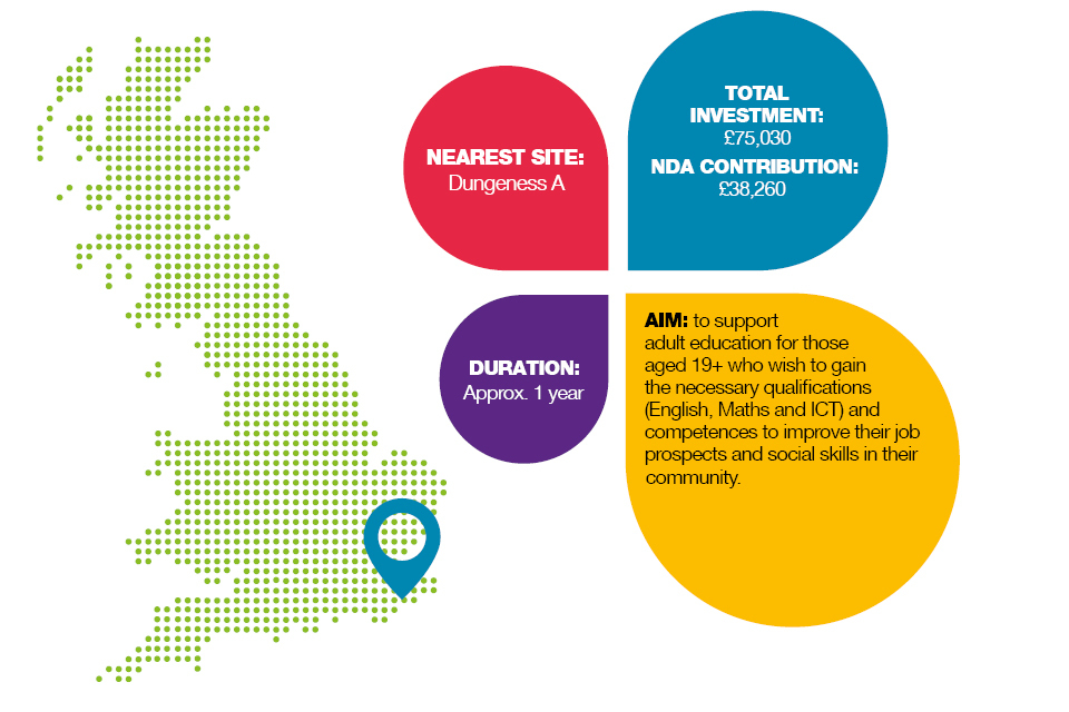 | Dungeness | Approx. 1 year | £75,030.50 | £38,260 | Romney Resource Centre, Information, Advice and Guidance services (IAG) and Department of Work and Pensions | Romney Resource Centre (RRC) |