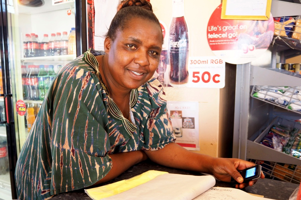 Penina Moyo, a shopkeeper in Umguza signed up as an EcoCash vendor on the mobile money transfer programme last year. Picture: Mira Gratier/DFID