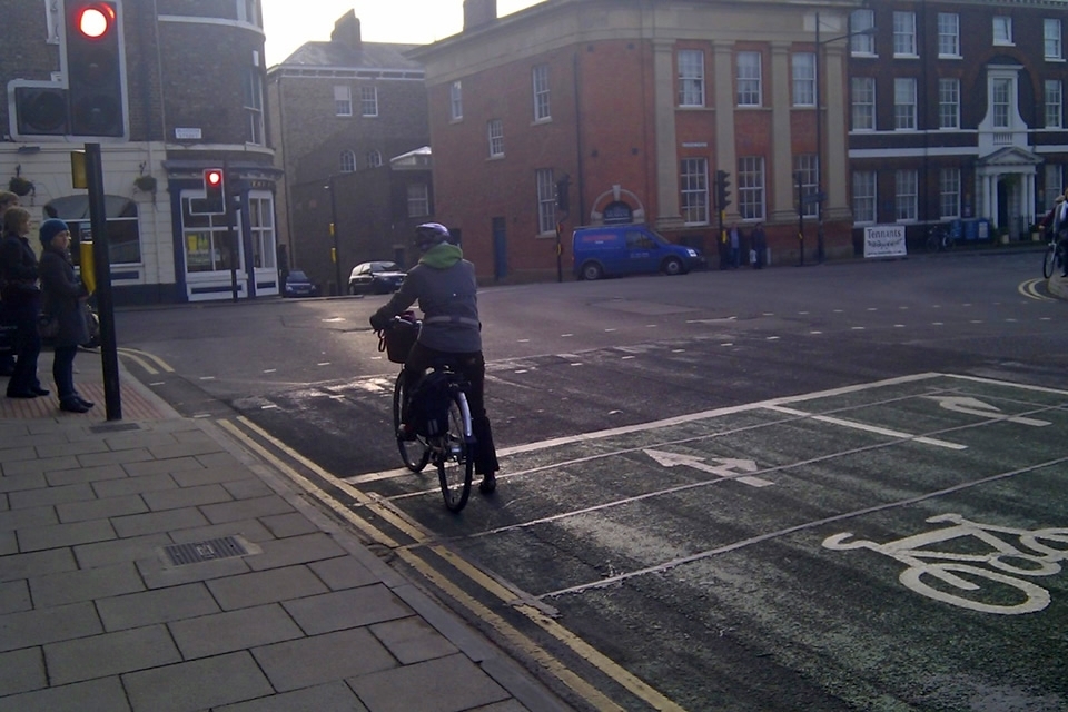 City of York council provided a green signal for cyclists which allows them to move off before other traffic.
