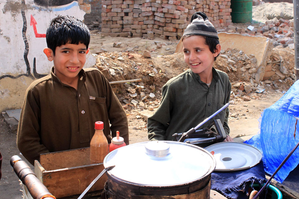 Yousef and Murtza selling food on the streets. They do not go to school. UK development investment will benefit 4 million chidlren like Yousef and Murtza to get an education by 2015. Picture:Victoria Francis/ DFID
