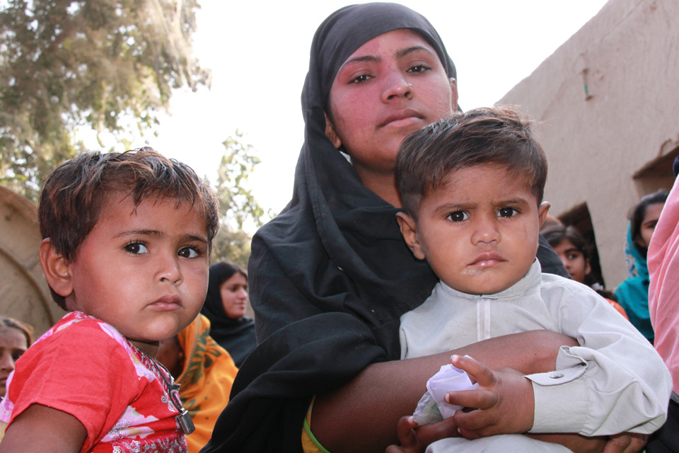 Munawar with two of her children at an International Medical Corps clinic in Sindh province. Picture: Vicki Francis/DFID