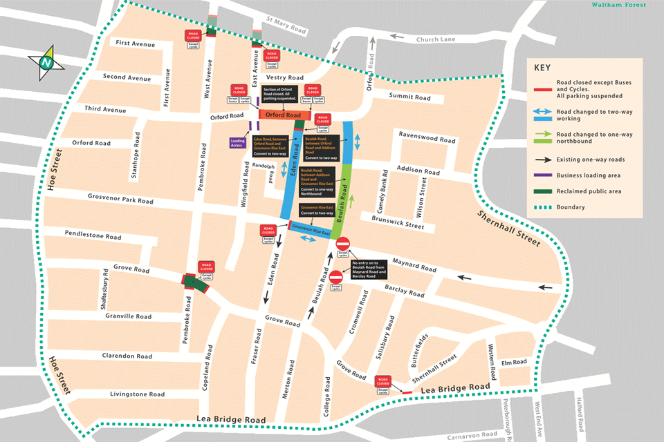 London Borough of Waltham Forest trialled an integrated set of measures to reallocate road space to public space. The measures we took included: