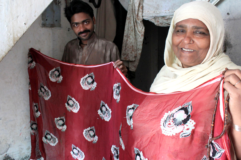 Sughra is from Lahore in Pakistan. She used to work on a piecemeal basis for meagre wages – as low as 40 pence a day.