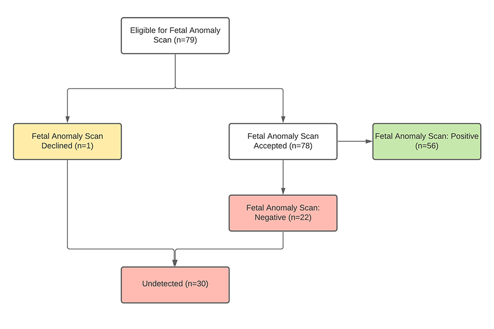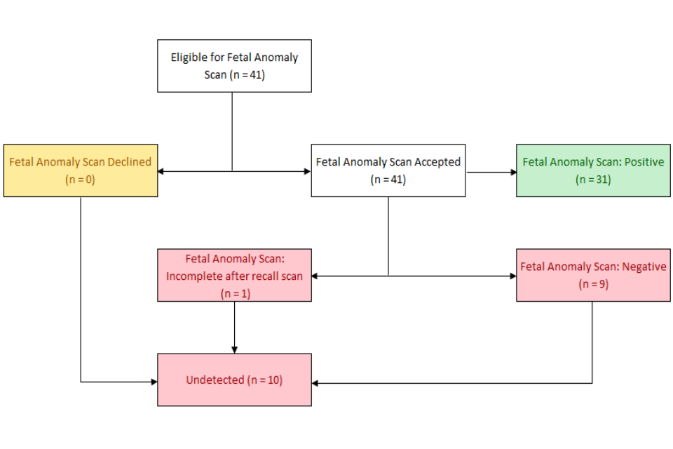 Figure 3: Babies with T18 who had a negative 20-week screening scan 2018/19 National Congenital Anomaly and Rare Diseases Registration Services (NCARDRS) data.