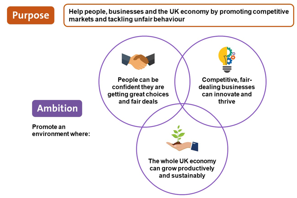 our ambition flows from our purpose and consists of the outcomes the CMA wants to achieve for people, businesses, and for the whole UK economy