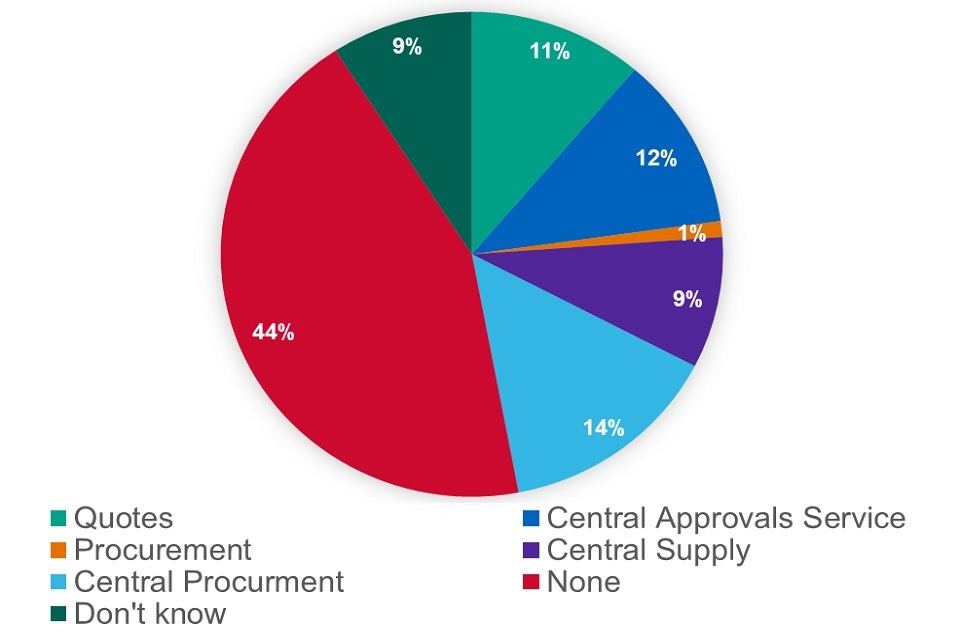 We asked which solution respondents preferred. Out of 285 respondents, 32 expressed a preference for quotes, 33 for a central approvals system, 25 for central supply, 41 for central procurement and 3 for any procurement solution. 144 respondents did not like any of the options and 26 said they did not know.
