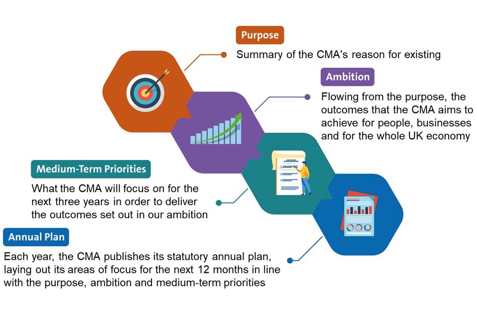 In a change from the past, we are setting out our Plan in 2 time horizons: our ambition and medium-term priorities for the next 3 years, and the key areas on which the CMA intends to focus in the next 12 months.