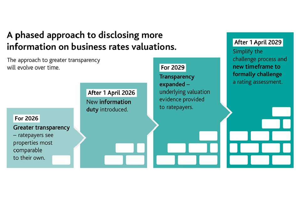 1.5 The VOA will therefore take a phased approach to greater transparency. This will enable most ratepayers to see more accessible information in the 2026 rating lists, and additional information from 2029 and beyond.