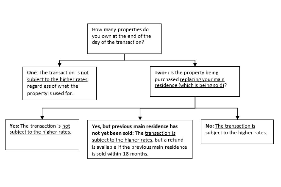 However, if the purchaser is not replacing a main residence (either because they have not sold a previous main residence within the last 18 months or the property being acquired is not a new main residence), the higher rates will apply.