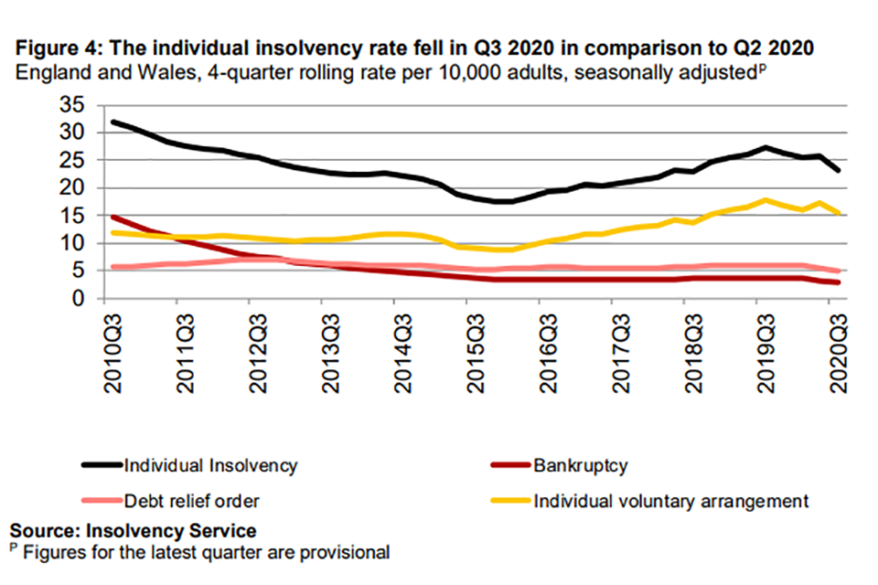 Graph showing how individual insolvency rate fell in Q3 2020 compared to Q2 2020