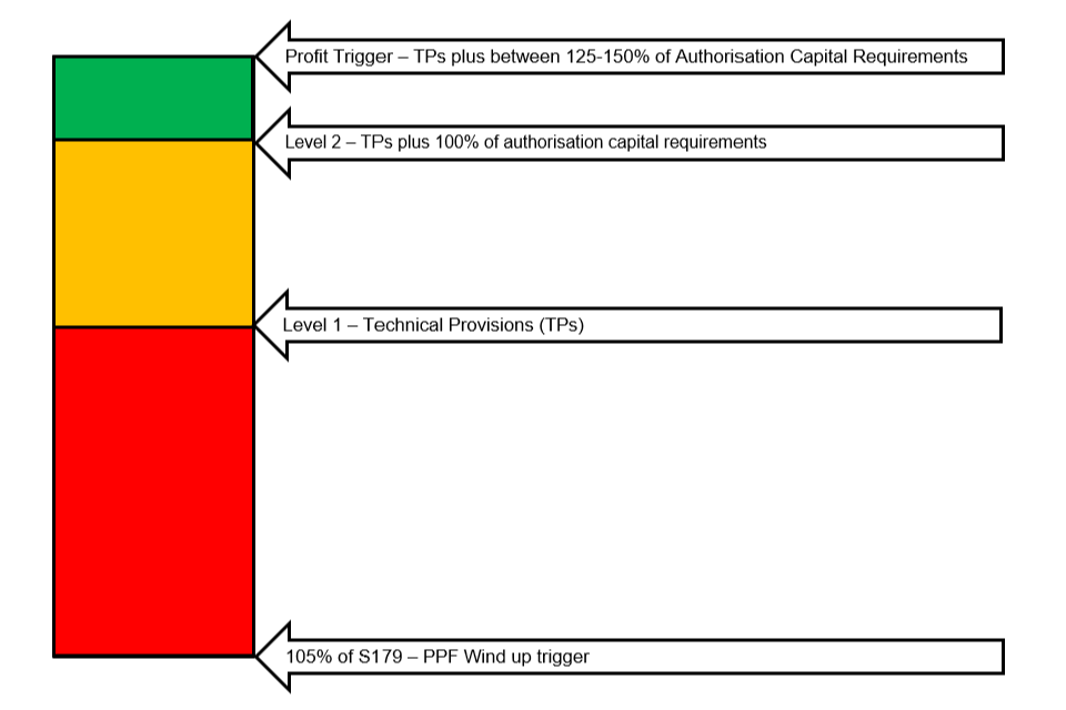 21. Superfunds will have the opportunity, within certain limits, to take corrective action if any triggers are breached. The diagram below demonstrates where we envision the intervention and profit triggers will be set. These are discussed in greater detail from paragraph 105 onwards.