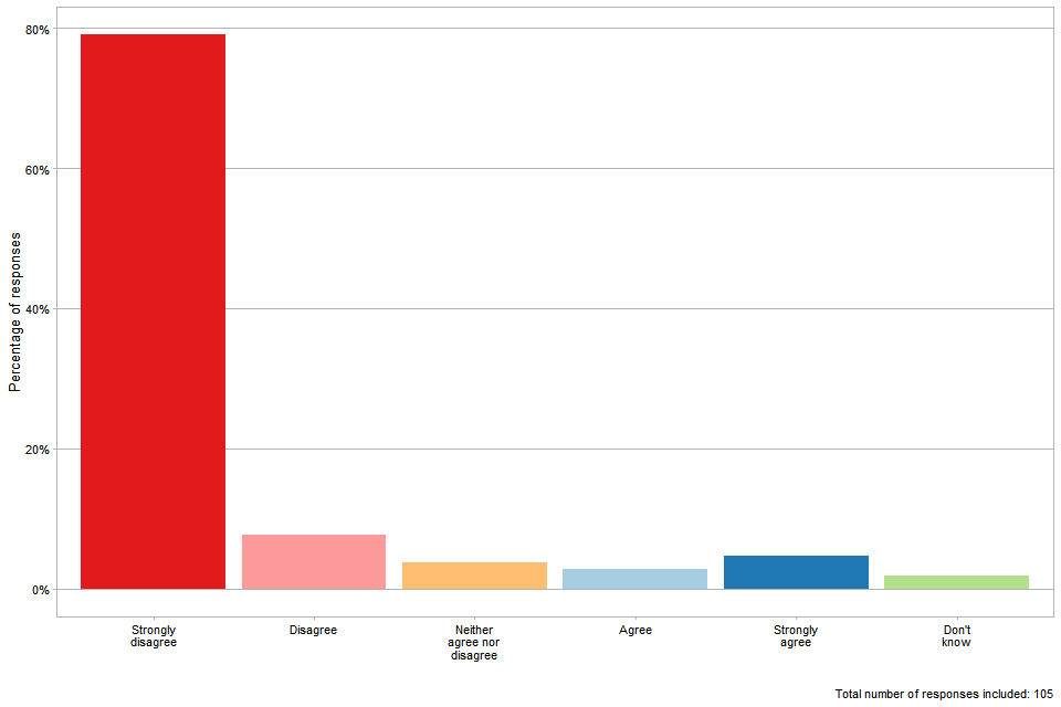 Responses to the consultation are not representative of the groups referenced, but only of those who chose to respond to the consultation. Where particular groups are referred to or compared, this refers only to those responding to the consultation and cannot be taken to represent the views of the public more generally. Differences between responding groups have been highlighted using judgement. We have assumed in analysis that respondents submitted responses in good faith which, if given, accurately represent their characteristics and their view. For example, we take at face value those selecting ‘individual – social care’ are indeed from this group, as verification was not sought.