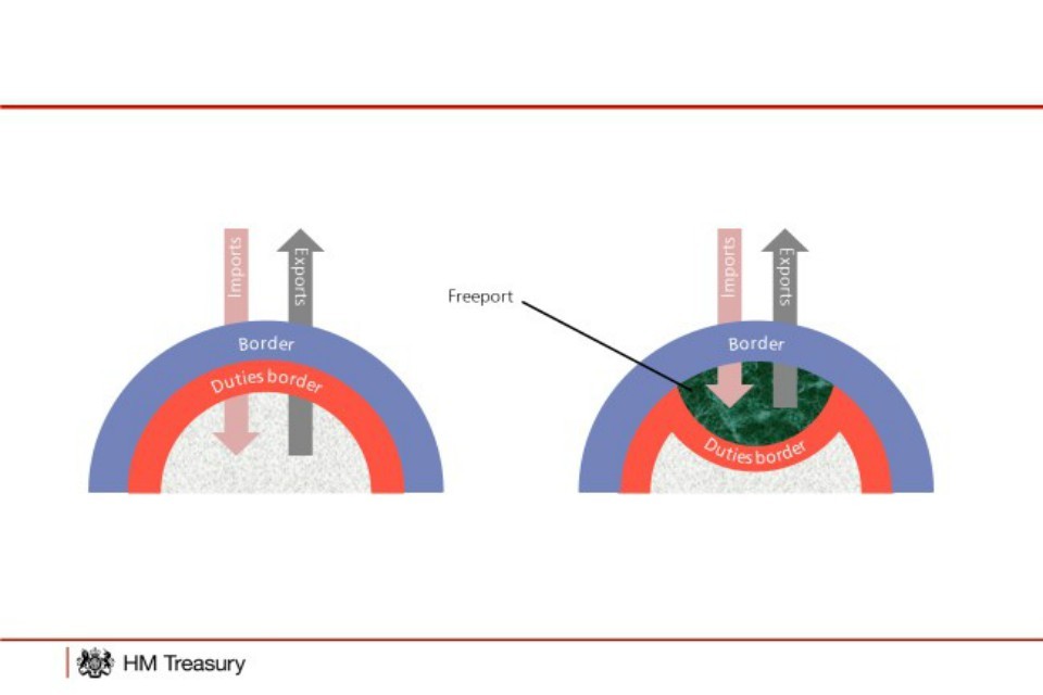Duty suspension – no tariffs, import VAT or excise to be paid on goods brought into a freeport from overseas until they leave the freeport and enter the UK’s domestic market.
