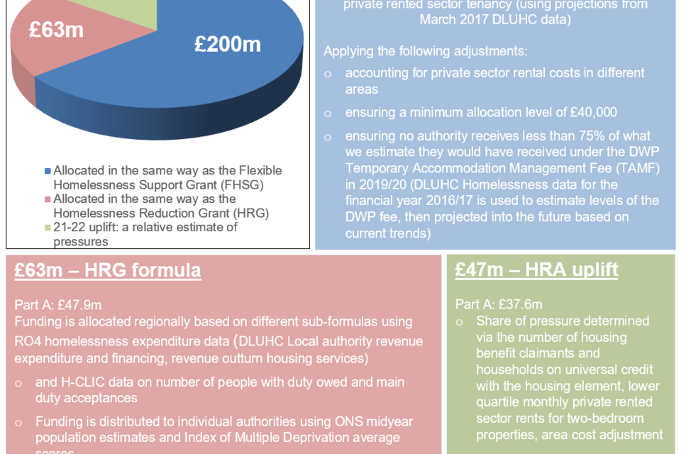 - £47m, introduced as an uplift in 2021/22, allocated using a new formula that takes into account relative homelessness pressures
