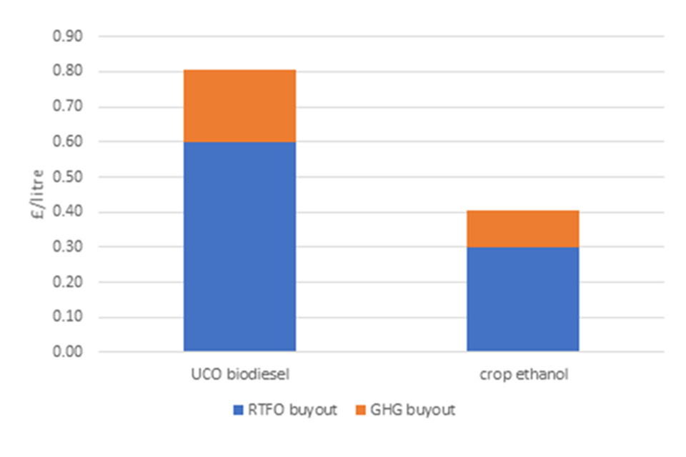 Since 2019 obligated fuel suppliers have had to meet a second obligation to supply development fuels[footnote 4], which has its own separate buy-out of 80p/litre. This consultation is regarding buy-out of the main obligation and the development fuel obligation is not considered further here.
