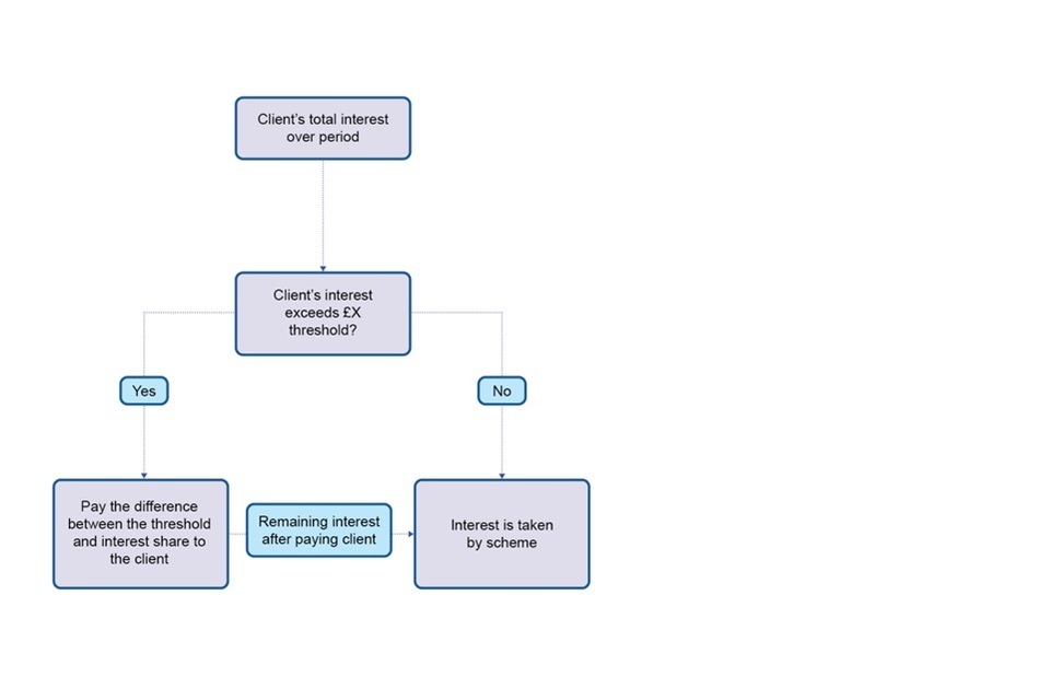 An alternative to the scheme retaining a flat percentage of all client account interest would be to adopt a threshold-based approach. Under this model, clients would receive a proportion of the interest generated on their funds above a specified threshold, while interest below that threshold would be remitted to the scheme. The rationale behind this approach would be to ensure that clients with substantial balances or long-term deposits benefit directly from the interest earned, aligning with principles of fairness and proportionality. It would also allow the scheme to continue capturing small amounts of interest that would otherwise be administratively inefficient to allocate to individual clients.