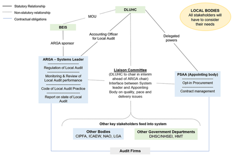 Sir Tony Redmond’s Independent review into the oversight of local audit and the transparency of local authority financial reporting reported in September 2020 that there was a lack of coherence and join up across the current local audit framework, as none of the organisations in the system “had a statutory responsibility, either to act as a systems leader or to make sure that the framework operates in a joined-up and coherent manner”, which was contributing to wider issues including audit delays and market instability.