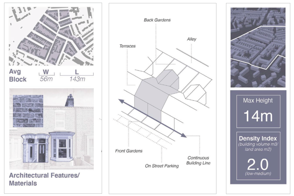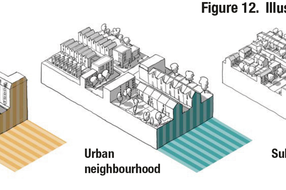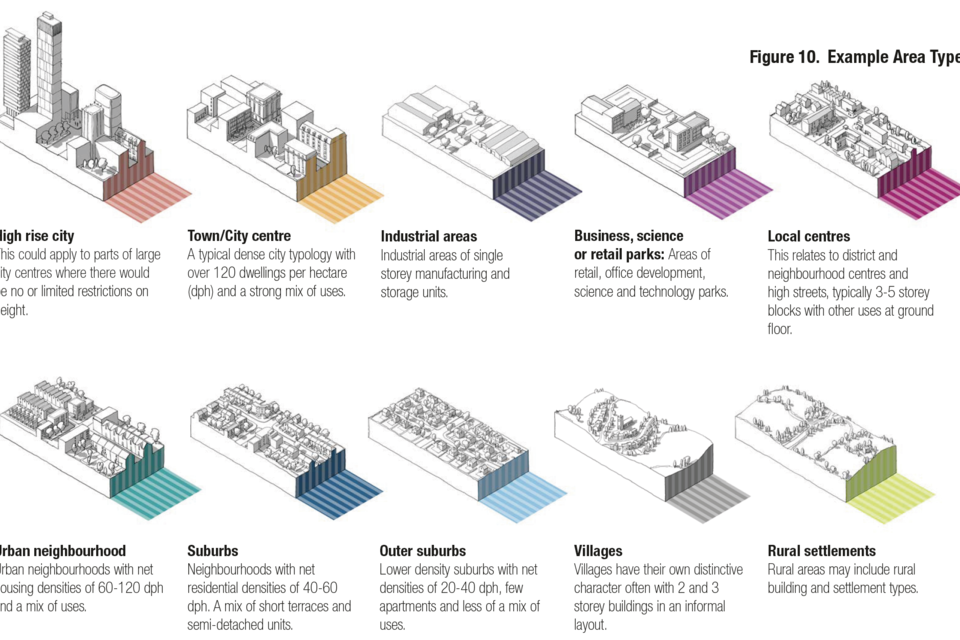For example, a suburban area type might bring together a number of different housing estates with common densities, heights, building line, party wall condition etc.)under the umbrella term “outer suburbs”.