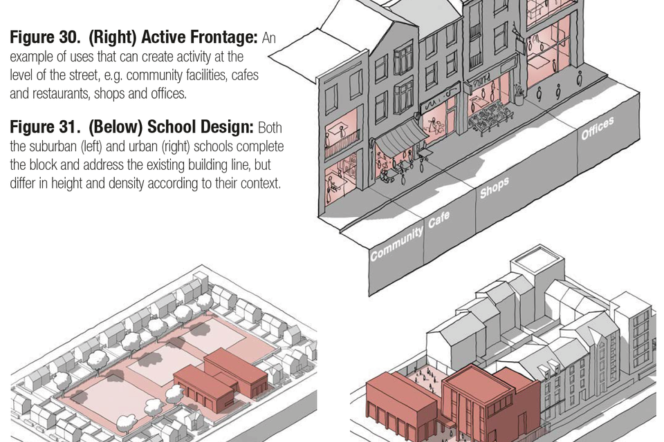 28. Some issues will depend on the decision about the coverage of the code. Codes that cover large scale development will need to include guidance on creating a new street network, public transport routes, planning and designing green spaces and providing schools and other facilities. By contrast in existing built-up areas where the street network etc. already exists, these elements of the code will be less relevant (see Figure 2).