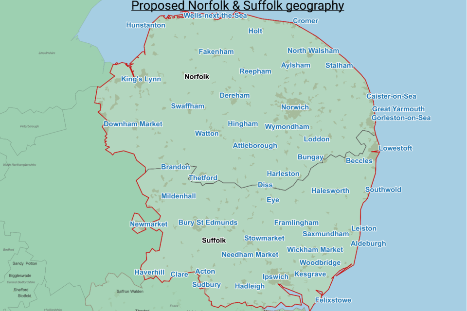 It is proposed that a Mayoral Combined County Authority is established over the local council areas of Norfolk County Council and Suffolk County Council. The government’s proposal is that the Combined County Authority would be formally known as the Norfolk and Suffolk Combined County Authority.