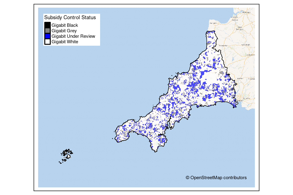 The outcome of the OMR is summarised in terms of White, Grey, Black and Under Review postcodes and premises in the Cornwall and Isles of Scilly Lot below.