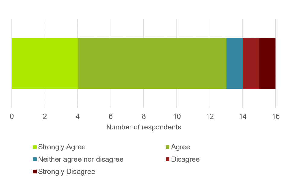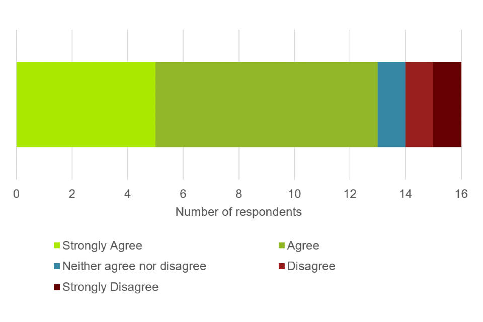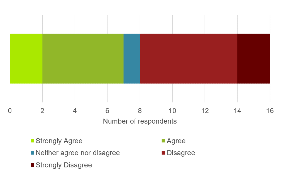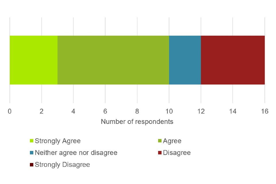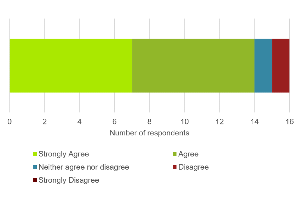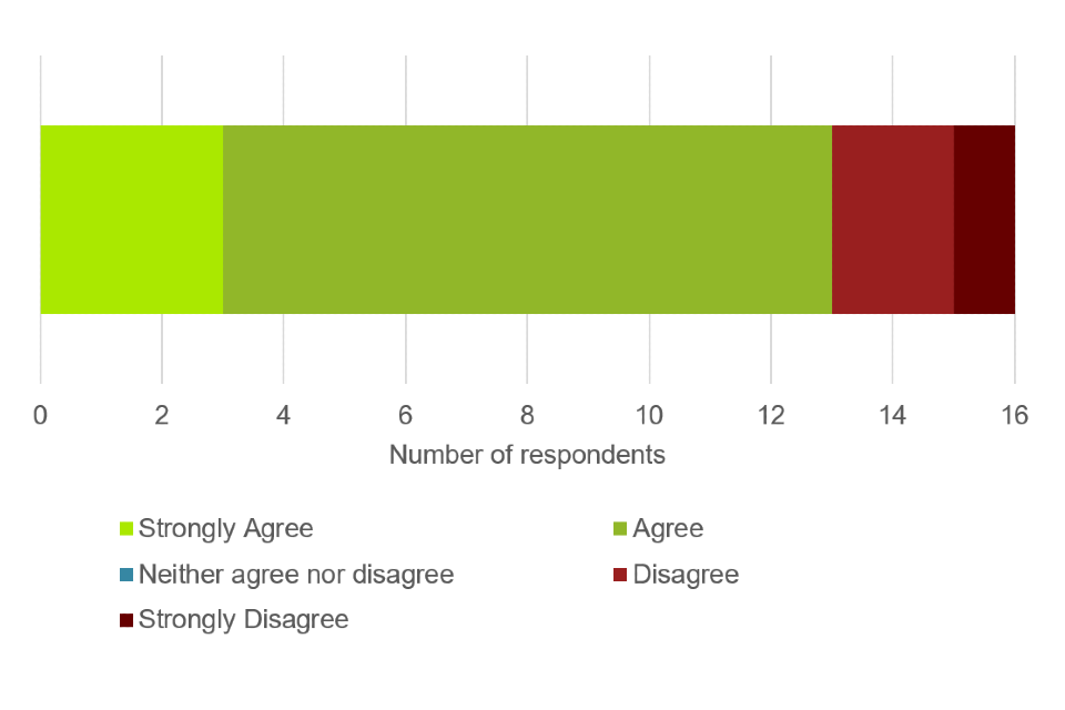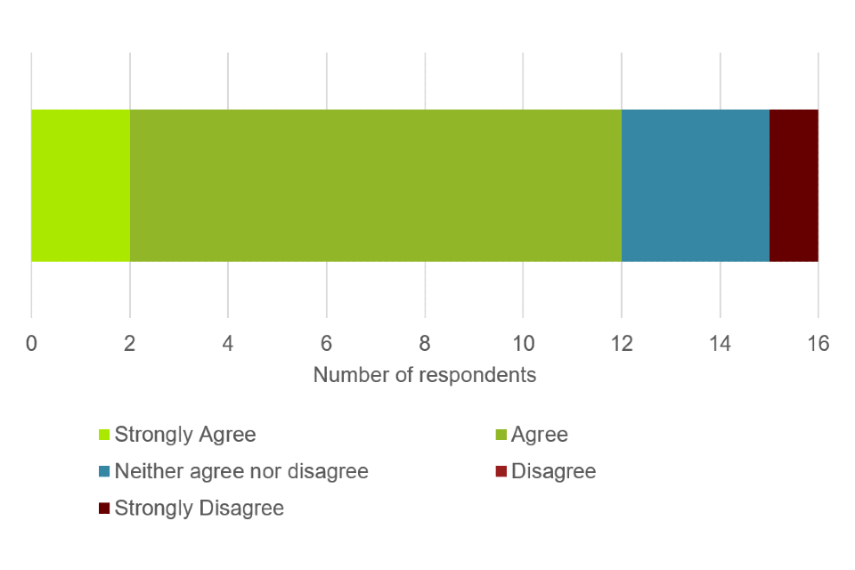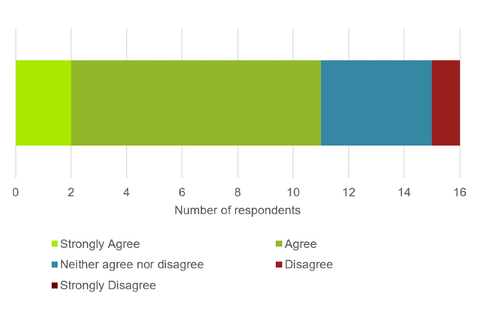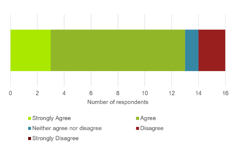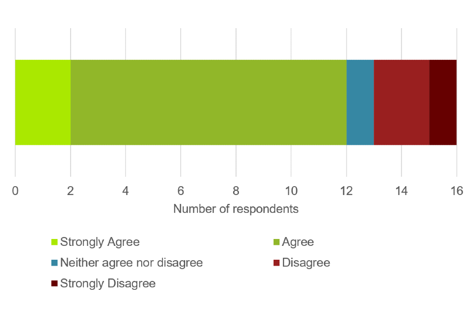 From the 16 respondents to this question, 13 either agreed or strongly agreed with the proposal.