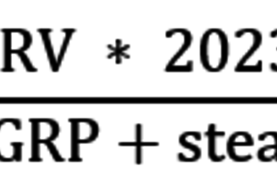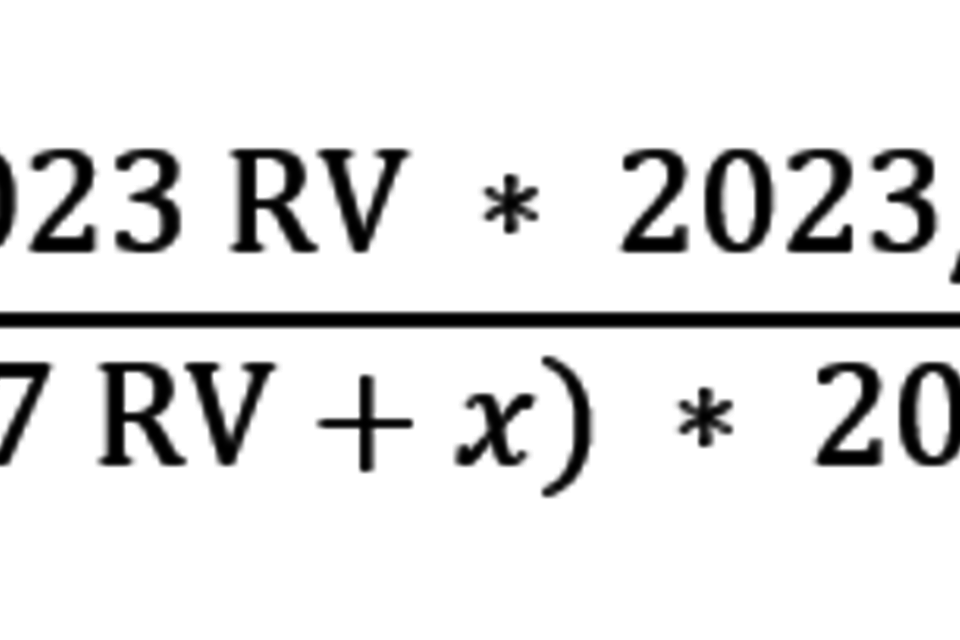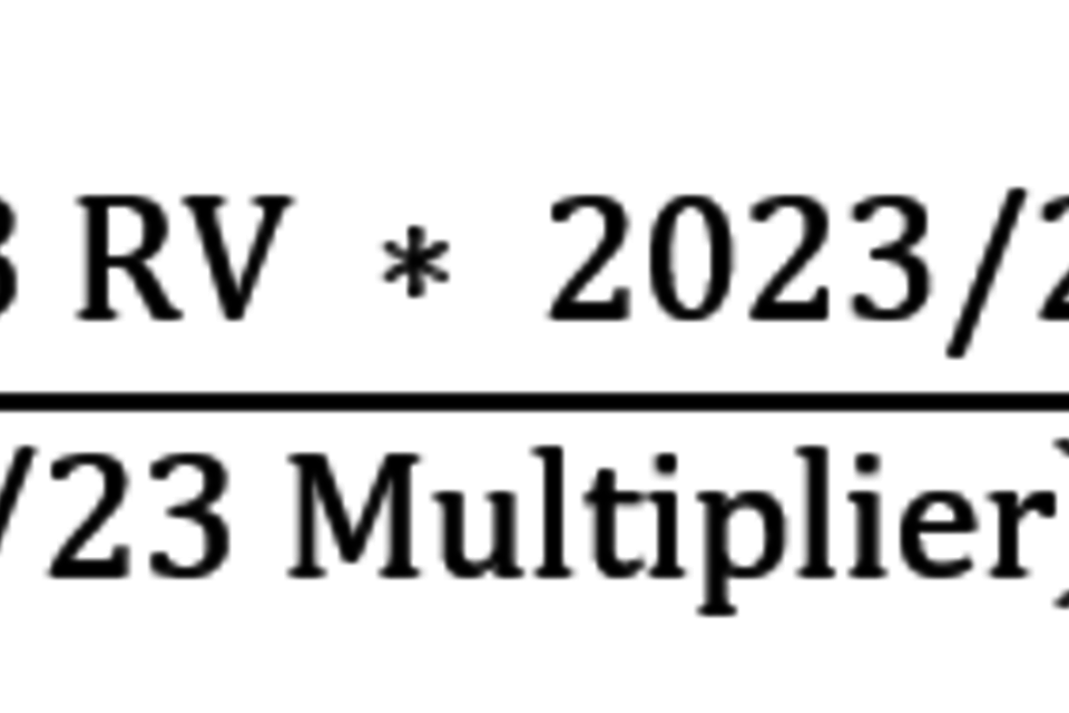 B’ = (2017 RV * 2022/23 multiplier) + (x * 2022/23 multiplier) (Formula 2)