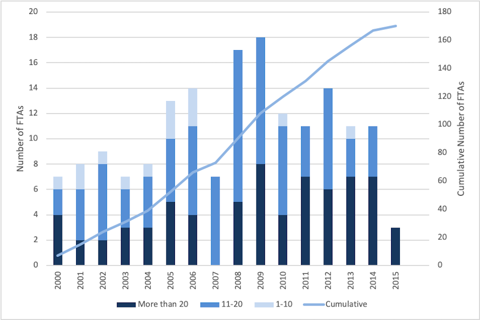 The number of free trade agreements (FTAs) around the world has grown substantially in recent decades (chart 1).