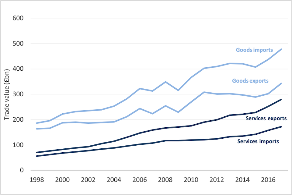 The UK is a highly open economy with trade (imports and exports together) equal in value to 62% of GDP.[footnote 3]