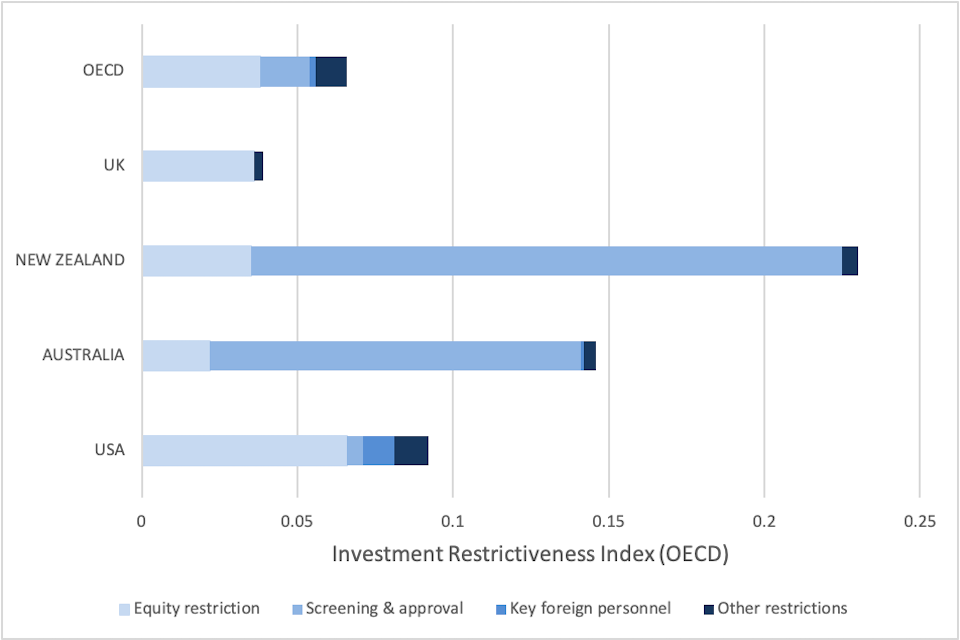 Source: DIT Analysis of the World Bank’s Content of Deep Trade Agreements Database. Coloured bars refer to the number of provisions in the FTA. The maximum number of provisions is 52.