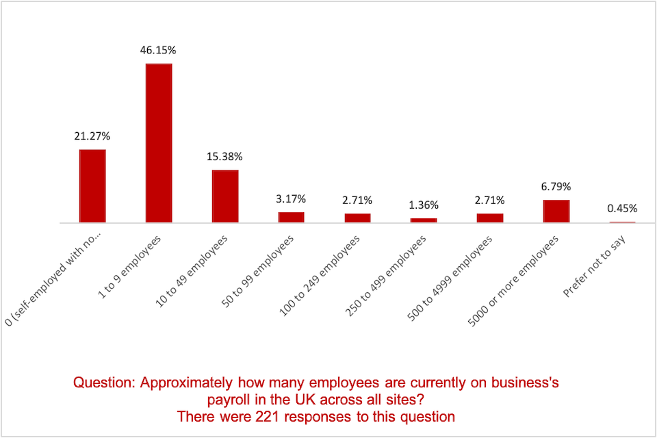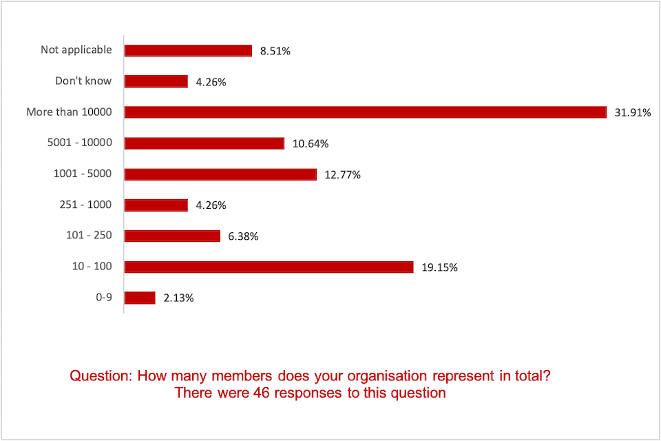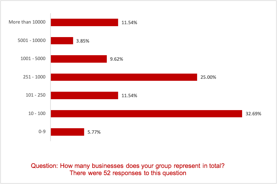 20) The online survey gave respondents the option to provide additional data about themselves or their organisation. This included questions such as their geographical location, age, gender, size of business and the number of businesses the business associations represent. Using this data, we have provided a detailed breakdown of respondents’ profiles in annex B.