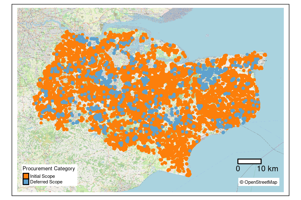 We wish to work collaboratively with industry to maximise efficiency, minimise market distortion and achieve our objectives within a tight time frame. To do this, we first identified the areas that were not commercially viable through the Open Market Review (OMR) and Public Review (PR) stages. This allowed us to understand from suppliers if there were any current or planned investment over the next three years in broadband infrastructure (Next Generation Access broadband, ultrafast and gigabit-capable) in the identified geography. For this Lot, the identified geography lay within the Kent region.
