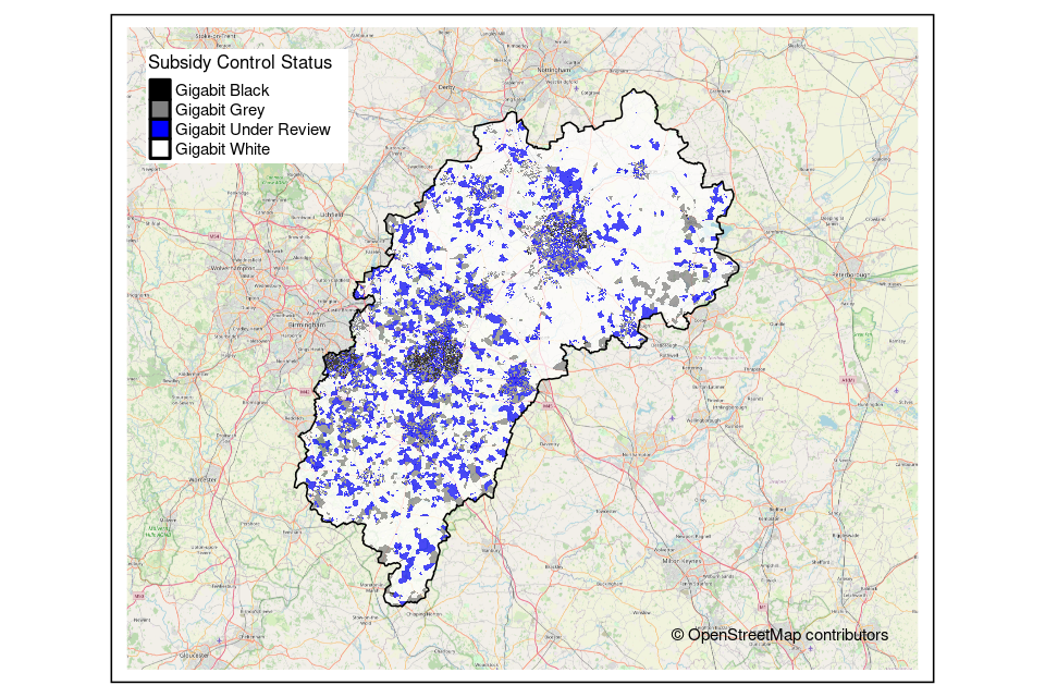The outcome of the OMR is shown within the map (Annex D) and associated postcode list published alongside this document and shows the subsidy classifications determined for each postcode within the Leicestershire and Warwickshire lot. Supplier data submitted during the OMR has been incorporated into the OMR outputs using a methodology that protects commercially sensitive supplier data.