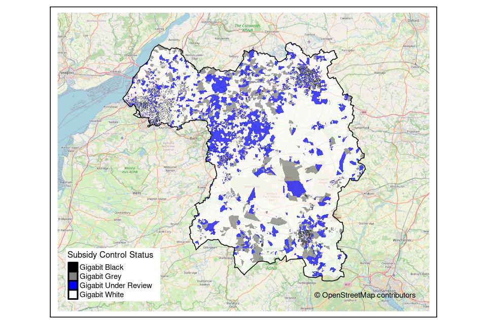 The outcome of the OMR is shown within the map (Annex D) and associated postcode list published alongside this document and shows the subsidy classifications determined for each postcode within the Wiltshire and South Gloucestershire (inc Swindon) lot. Supplier data submitted during the OMR has been incorporated into the OMR outputs using a methodology that protects commercially sensitive supplier data.