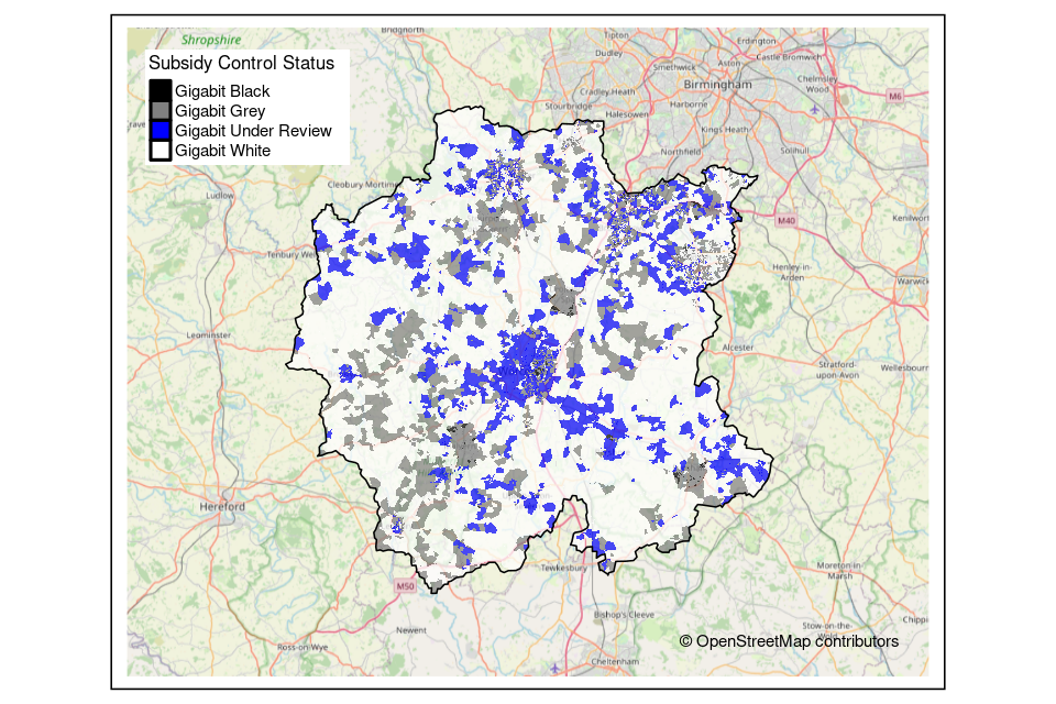 We wish to work collaboratively with industry to maximise efficiency, minimise market distortion and achieve our objectives within a tight time frame. To do this, we first identified the areas that were not commercially viable through the Open Market Review (OMR) and Public Review (PR) stages. This allowed us to understand from suppliers if there were any current or planned investment over the next three years in broadband infrastructure (Next Generation Access broadband, ultrafast and gigabit-capable) in the identified geography. For this Lot, the identified geography lay within the Worcestershire region.