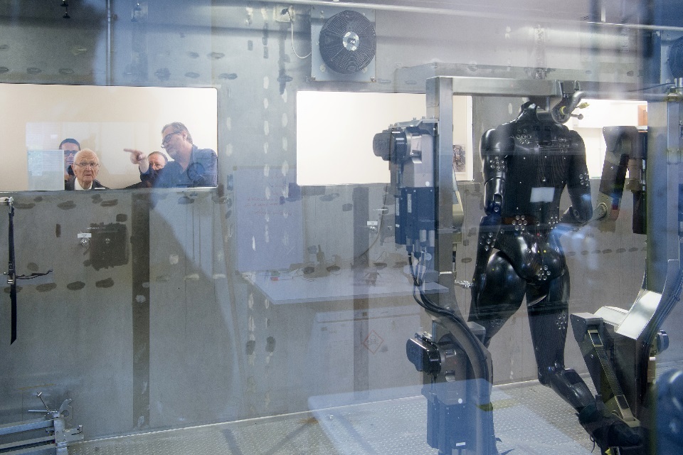Gilbert was given the VIP treatment, visiting some of the most innovating parts of the Dstl site, including Porton Man, a robot mannequin that helps test the next generation of chemical and biological protective suits for the UK Armed Forces.
